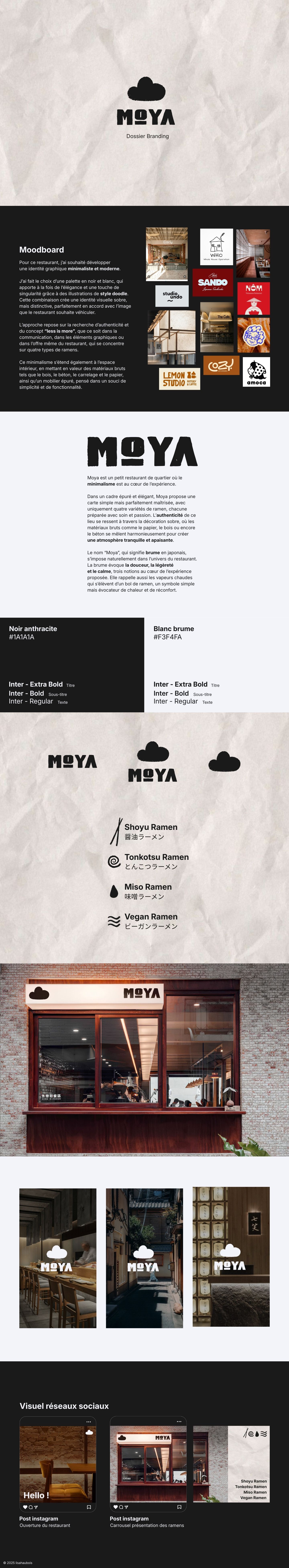 Dans un cadre épuré et élégant, Moya propose une carte simple mais parfaitement maîtrisée, avec uniquement quatre variétés de ramen, chacune préparée avec soin et passion. L’authenticité de ce lieu se ressent à travers la décoration sobre, où les matériaux bruts comme le papier, le bois ou encore le béton se mêlent harmonieusement pour créer une atmosphère tranquille et apaisante.